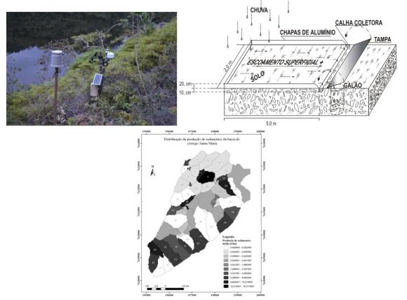 Principais equipamentos: Estações climatológicas e hidrossedimentológica; Sensor de Matriz Granular e Computadores.
